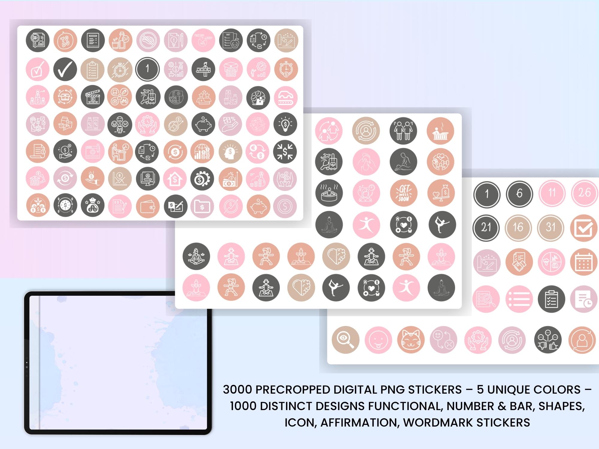 Mega Bonus: 2000+ pre-cropped PNG digital stickers in boho neutrals (lifestyle, seasonal, motivational)—mix & match for custom vibes.