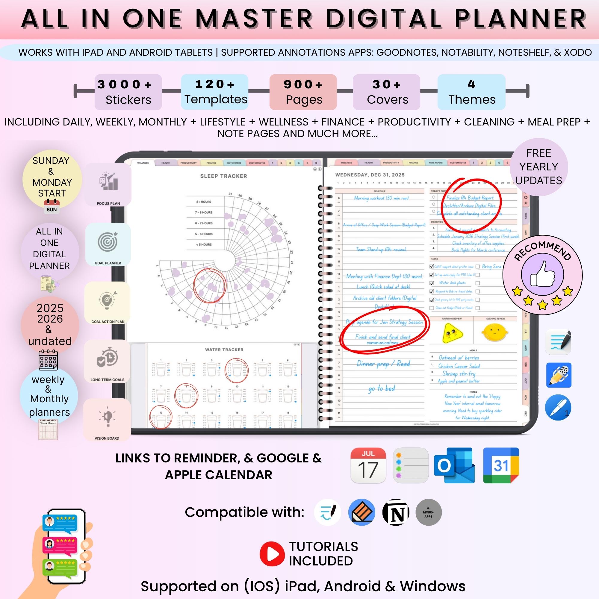 “All-In-One Digital Planner 2025 2026 2027 Undated, Daily Weekly Monthly Goodnotes iPad Planner With Hyperlinks, Calendar, Journal Templates”