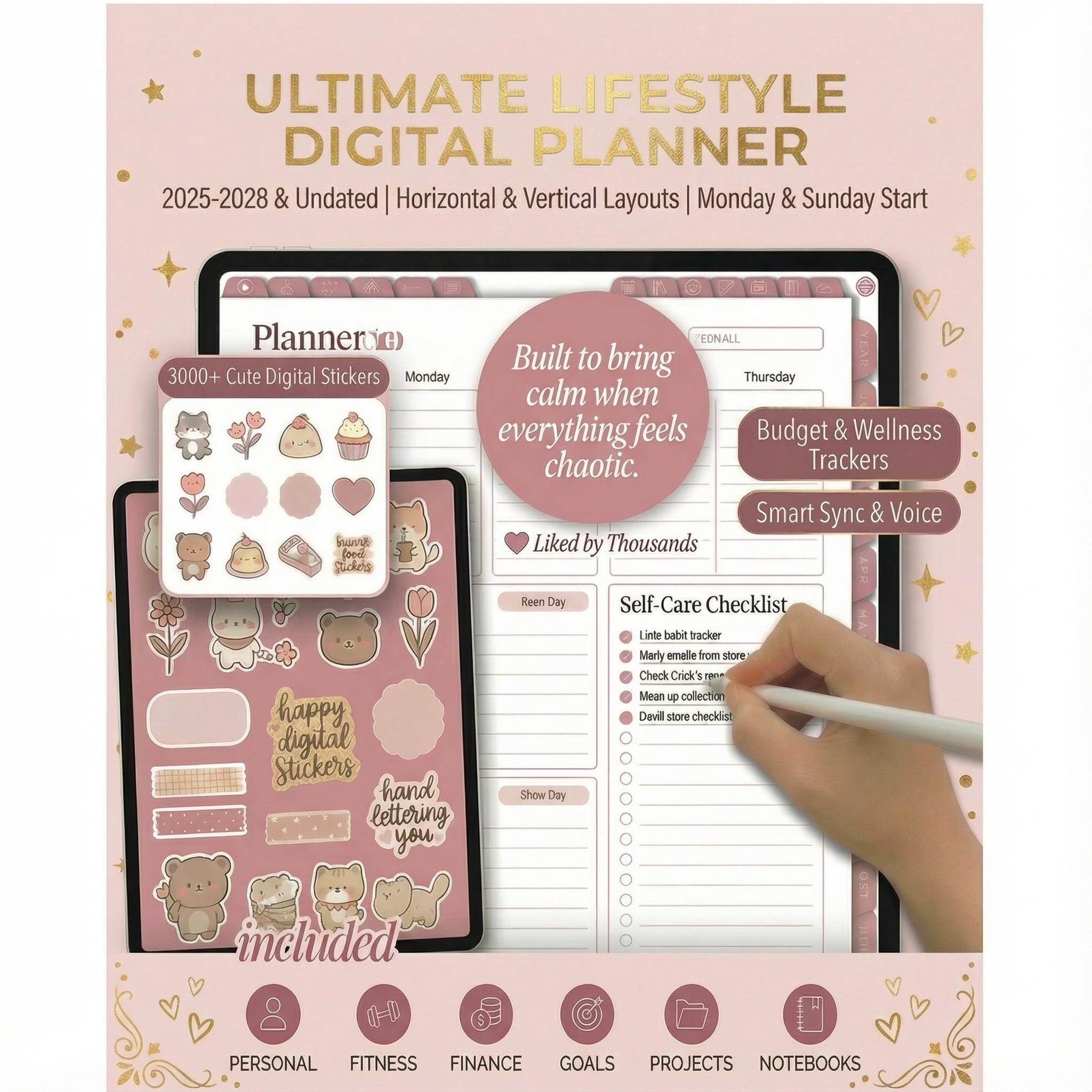 All-in-One Digital Planner for iPad, GoodNotes, and PDF apps. Includes daily, weekly, and monthly layouts, ADHD-friendly structure, habit & goal tracking, finance planning, wellness tools, and more. Ideal for students, busy moms, professionals, and business owners. All-In-One Digital Planner 2026 Life Organization & Goal Planning Hyperlinked iPad Planner for GoodNotes