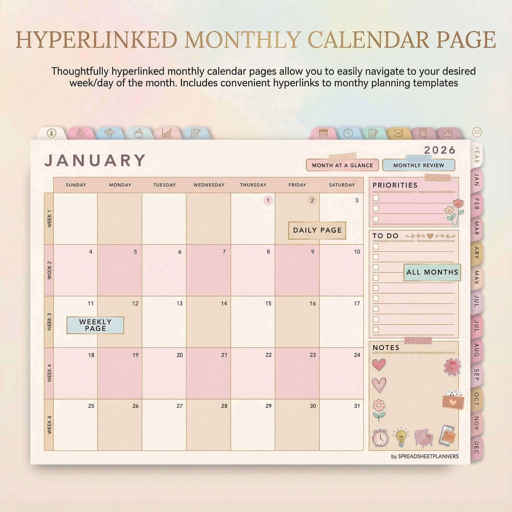 All-in-one Digital Planner 2026, Hyperlinked Trackers For GoodNotes, iPad Digital Download, Calendar, Task & Goal Tracker, Journal Notes
