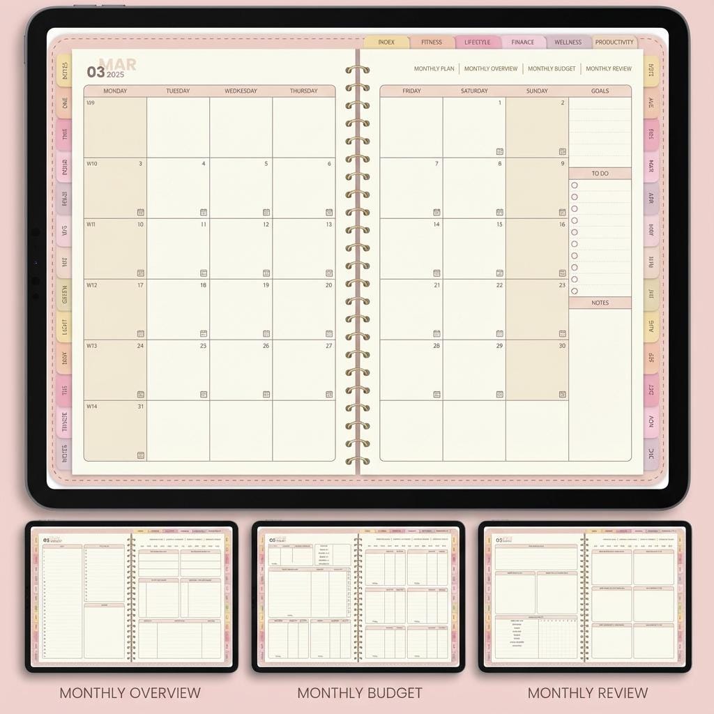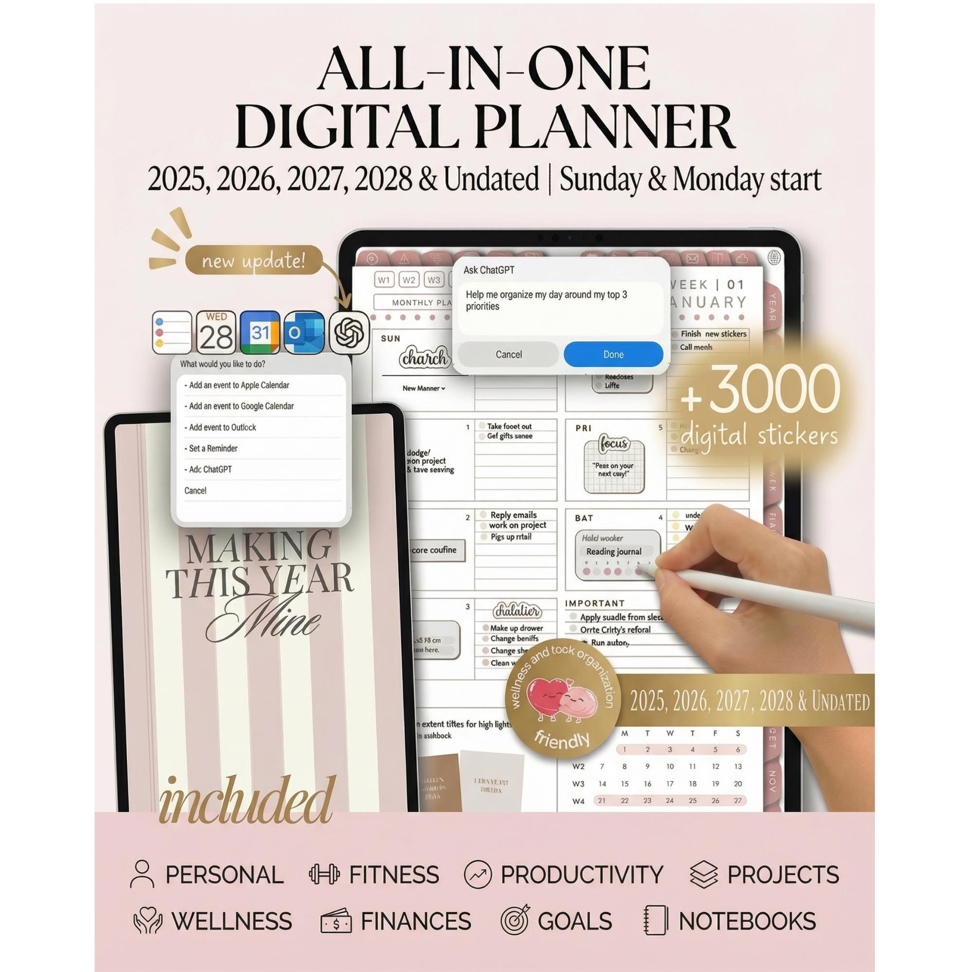 All-in-One Digital Planner for iPad, GoodNotes, and PDF apps. Includes daily, weekly, and monthly layouts, ADHD-friendly structure, habit & goal tracking, finance planning, wellness tools, and more. Ideal for students, busy moms, professionals, and business owners. All-In-One Life Digital Planner 2026 2027 2028, Aesthetic iPad GoodNotes Planner, Hyperlinked Daily Weekly Monthly Planner, ADHD Friendly