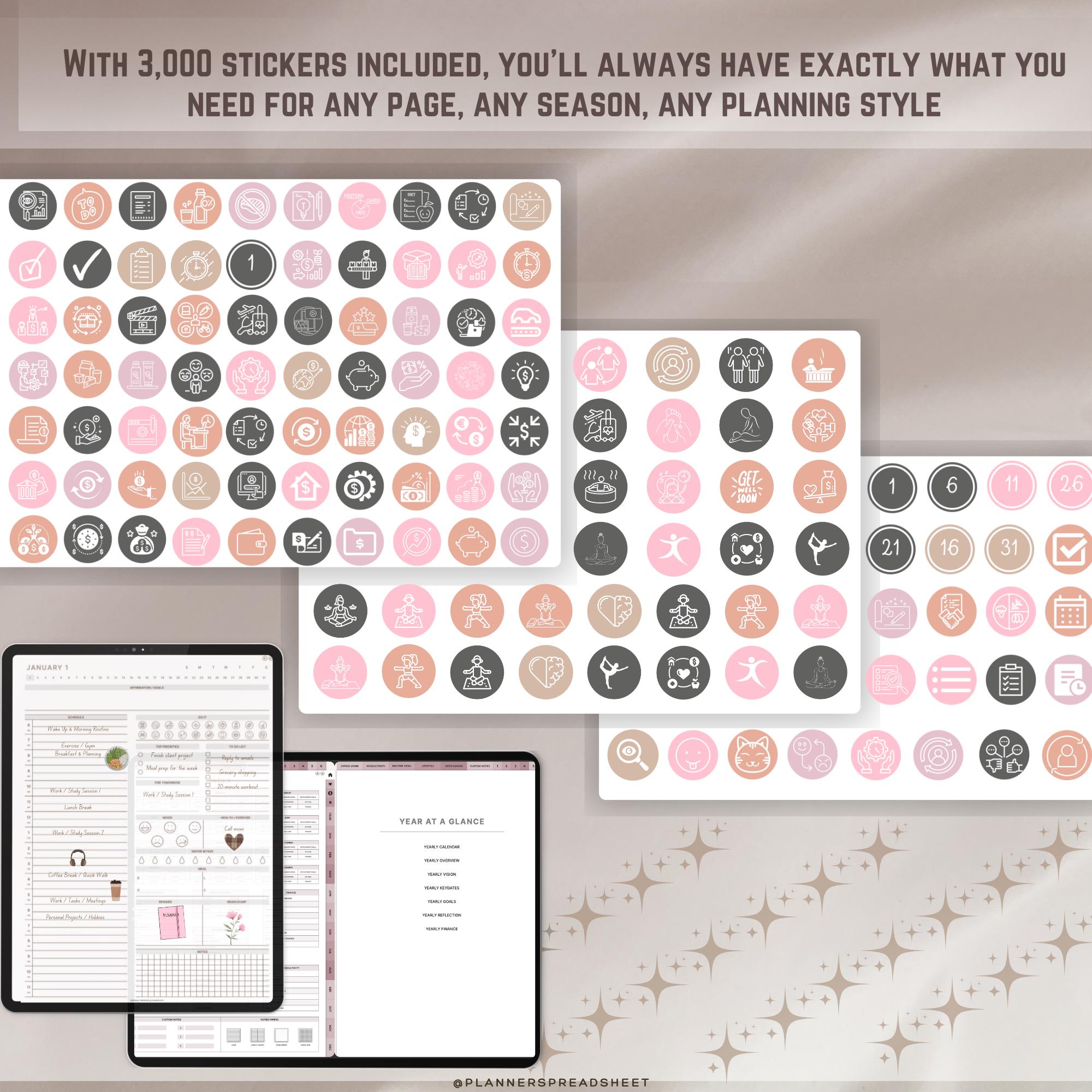Includes 3,000+ minimalist digital stickers — perfect for planners, ADHD users, and aesthetic lovers