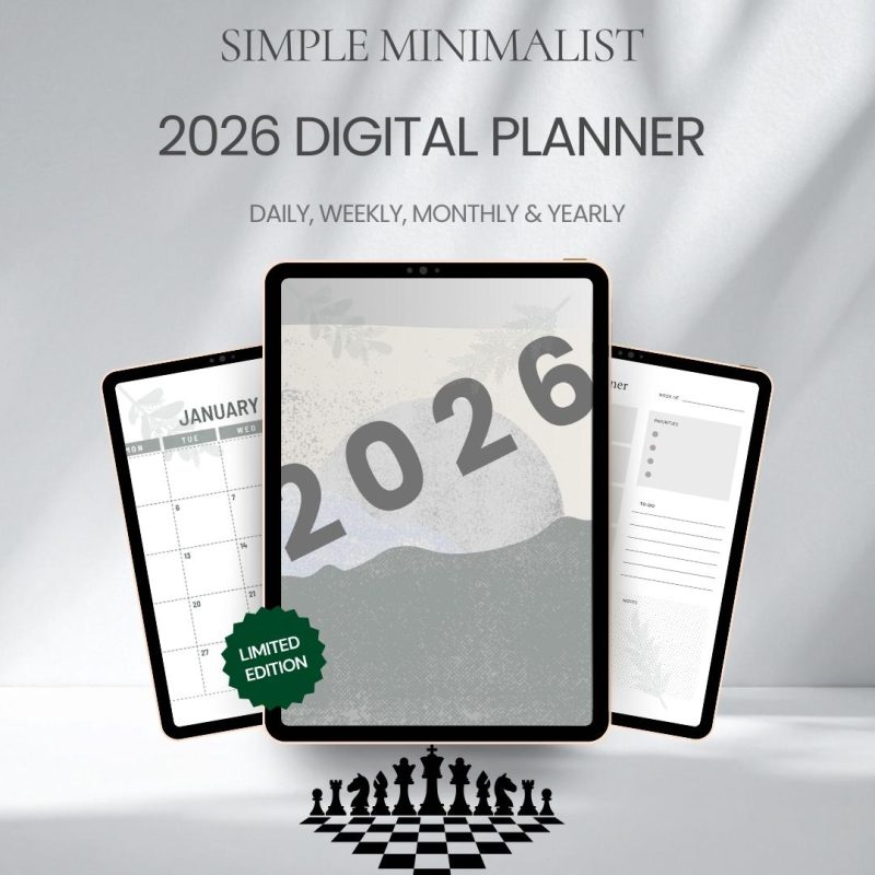 Minimalist ADHD Digital Planner 2026, Simple Hyperlinked Daily, Weekly & Monthly Planner PDF, iPad GoodNotes Focus Organizer, 2026 Portrait